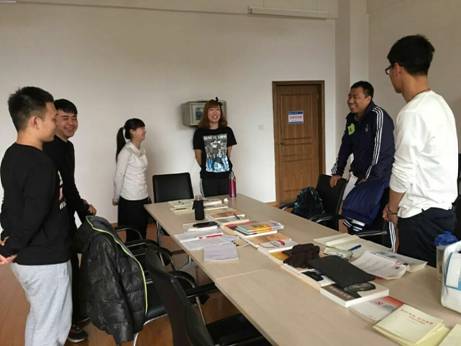 时间过得总是飞快,在指导老师刘美云老悉心关怀下,不知不觉中实习进程已过去一半,刘老师总是打电话问候我们的实习情况,并且亲自来到球馆里看望我们。刘老师、程主任与我们几个实习一起进行座谈,事后我们一起合影留念。