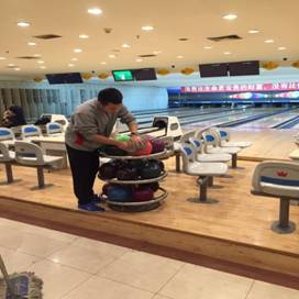 所有大四在学生去各自指派地点进行为期两个月的实习,我们小组四人分到了滨河保龄球馆。
