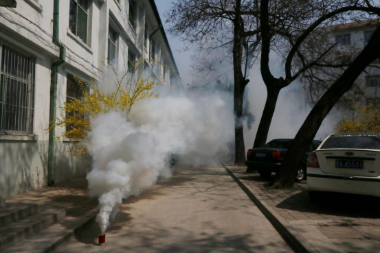 中午12点50分,工作人员释放烟雾弹,随着各楼层安全员的吹哨声,在班委和学生会干部的疏导下,同学们冷静、有序、迅速地撤离出宿舍楼,并于宿舍楼外的安全的区域集合。演练结束后,首先由郭老师向大家指出了演练中存在的一些问题,并讲解了火灾逃生中的要点,随后向大家普及了灭火器的常识和使用方法,并由学生代表操作实践。最后,贾书记对本次演练做了总结,他强调,消防要做好,预防是关键。远离安全隐患,自己才是保护生命安全的关键。遇突发状况逃生时,头脑要清醒,做到科学、智慧地逃生。