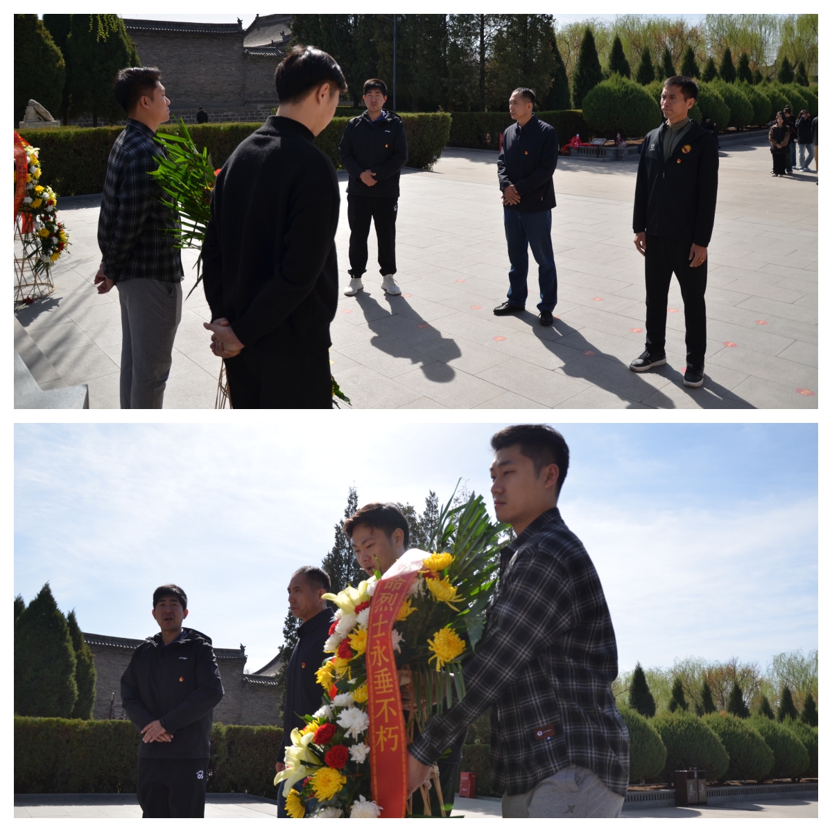 全体同志在刘胡兰纪念雕像前肃穆默哀,并向革命先烈敬献花篮。随后,大家依次向烈士敬献献花,缓步绕行烈士墓一周,表达对革命先烈的诚挚敬意和深切缅怀。