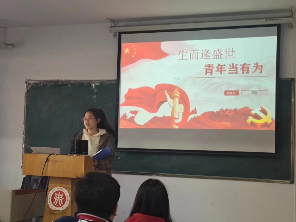 李瑞同学在会上讲到,当代中国青年是与时代同向同行,共同前进。我等青年要勇敢肩负起时代赋予的使命以更强的担当,更高的标准,更大的作为,做一名合格的中国特色社会主义建设者和接班人。为此,我们要坚定理想信念,深入学习贯彻新时代中国特色社会主义思想,增强四个意识,坚定四个自信,做到两个维护,积极参加党史学习,从党的百年非凡历程中激发信仰,获得启发,积蓄力量,不忘初心,牢记使命。
