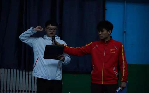 教学副院长吴剑教授,公体部主任李江霞副教授,小球课程组组长谭志丽老师,裁判长黄海老师,副裁判长崔园炜老师、安静老师、刘大超老师、张克豹老师。吴院长致开幕词,他表示此次比赛旨在鼓励学生积极投身体育运动,让体育比赛成为学生享受乐趣、增强体质、健全人格、锤炼自我的平台。运动员代表张旭同学代表运动员宣誓,裁判员代表刘嘉华同学代表裁判员宣誓。在热烈掌声中,比赛拉开帷幕。