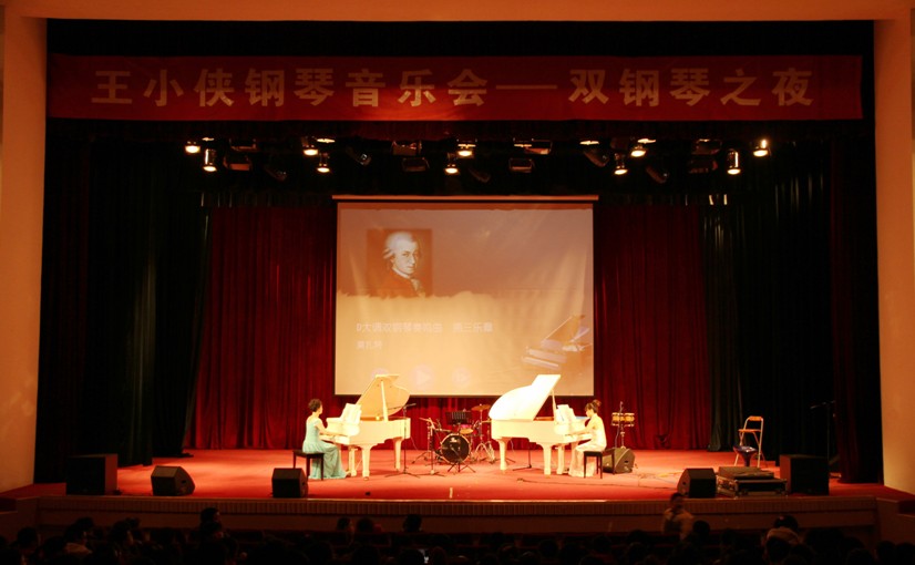 教师王小侠主演的音乐会于晚上7点缓缓拉开序幕,此次别开生面的钢琴表演,以双钢琴独特的艺术表现能力,特邀了弦乐队、架子鼓、贝斯、邦戈鼓等乐器的配合演出,使音乐会高潮迭起,最后以一首配有精美MV的THE DAWN 将音乐会推向了全场的最高潮,在场观众反响热烈,音乐会在热烈的掌声中完美的落下了帷幕。