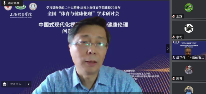 刘鸿宇教授做了题为《健康伦理学在体育教育、竞技运动和社会体育中的指导作用》的报告,他列举了体育教育、竞技体育和运动医学领域对健康的忽视现象,提出“体育无健康,就不是体育”的鲜明观点。他列出了当前体育与运动健康科学领域发展的进步与不足,并提出要重视人才培养模式改革、科研伦理规范的教育普及、体医融合的落实、运动训练与比赛伦理审查机制的建立和竞技体育健康伦理意识的强化。
