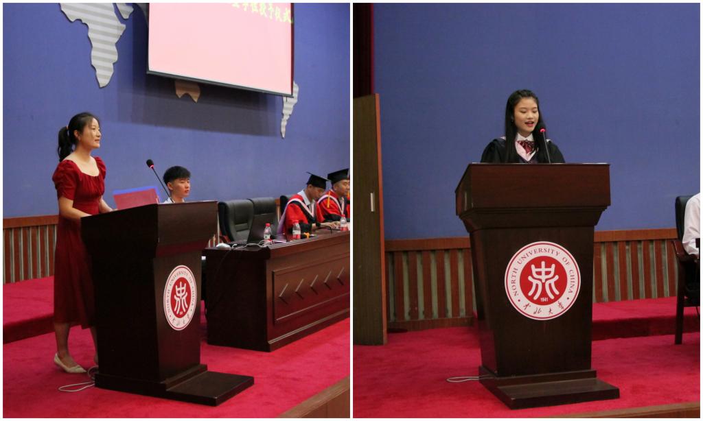在校生代表周颖发言,表达对毕业生的感谢与祝福;毕业生代表郑璐瑶发言,诉说了自己的不舍与感激之情,并对学院送出诚挚的祝福。