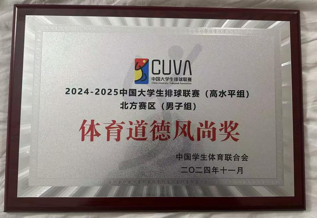 男排在小组赛中3战3捷,以小组的第一的身份昂首进入16强。在16进8的比赛中,我们以3:1的比分战胜中央财经大学男排,闯入全国前8。在8进4比赛中与本次赛事冠军老牌劲旅西北工业大学相遇,最终1:3遗憾落败!本次比赛以只输一场的成绩获得了2024-2025年中国大学生排球联赛高水平组(北方赛区)第五名以及体育道德风尚代表队、王太林教练获得体育道德风尚教练员。同时也获得直通总决赛资格!