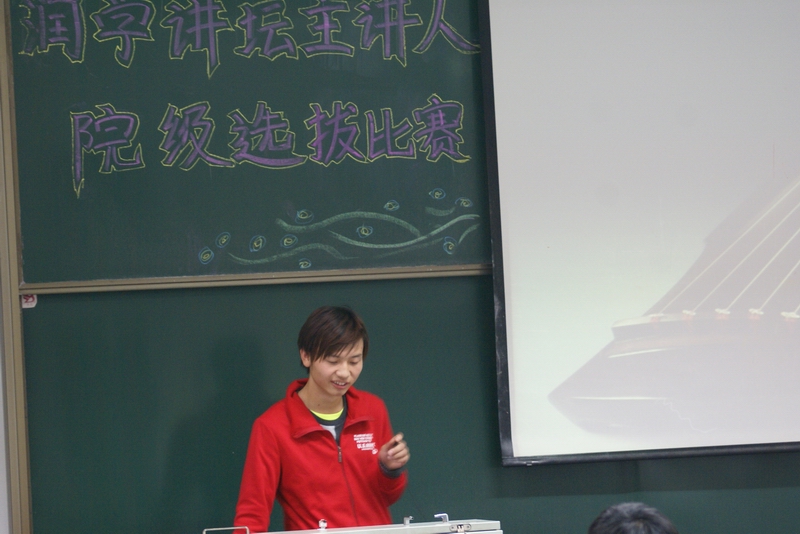 本次选拔赛秉承“致知于行”的校训,以“春雨润物,厚德博学”为指导精神,以学生自讲自听的方式进行选拔,主题由选手自拟。十一位选手准备充足,每人利用10分钟的演讲时间充分展现了自己的风采。每位选手的讲题覆盖个了各个学术方面,为在场人员介绍了多方面多角度的知识面。经过角逐,来自 09100341班的蒋斌娥获得第一名,11100241班的张克豹和10100241的齐飞分别获得了第二名和第三名的好成绩。