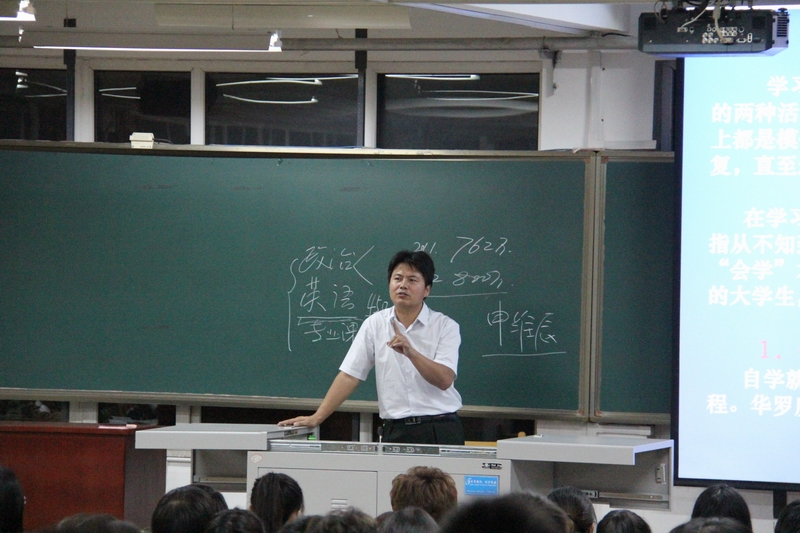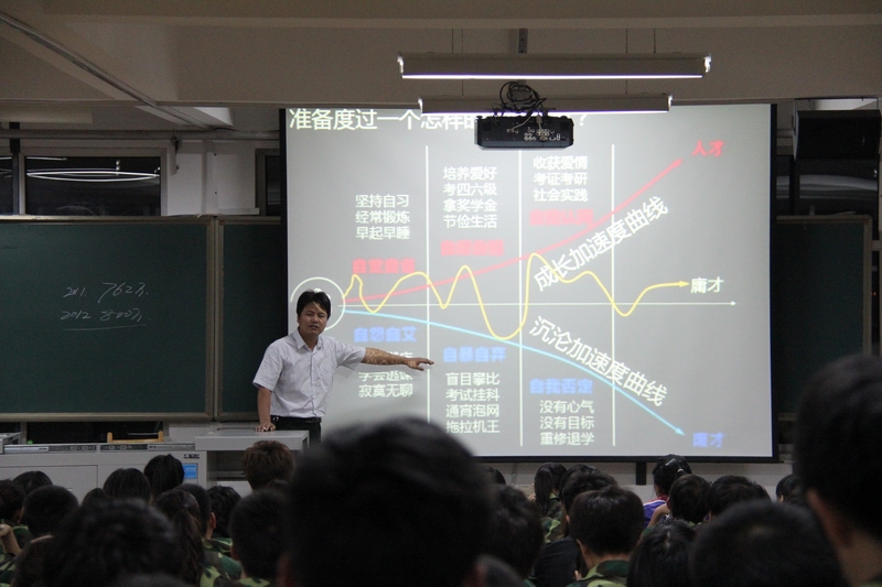 党总支副书记曹凤才老师带来了一堂关于如何转变学习方法,明确人生定位的新生入学教育讲座。