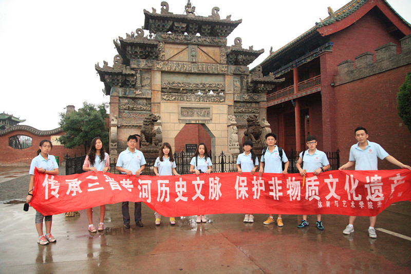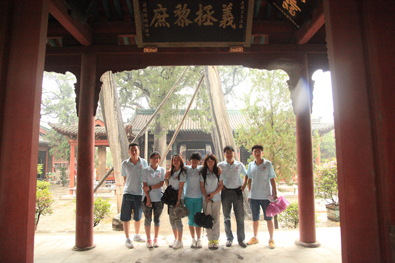 体育与艺术学院的11名“母亲河寻根之行”社会实践小分队队员在田维飞老师的带领下走进了华夏武圣关公庙,开始我们以“追溯非物质文化遗产”为主题的暑期三下乡活动。