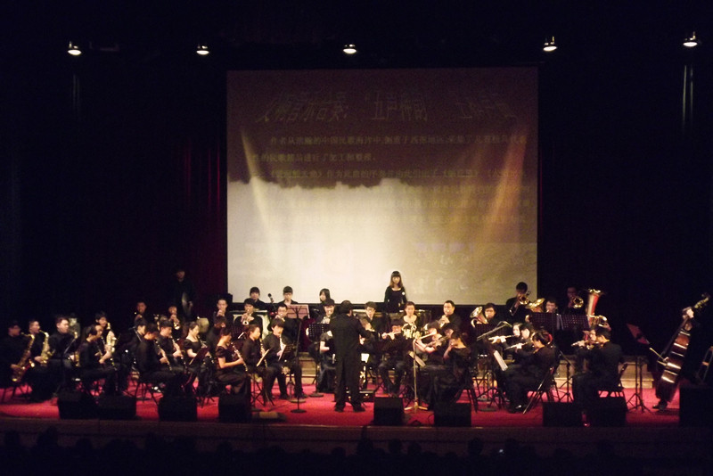 青年交响管乐团担任演奏,是把课堂解说形式搬上了舞台的课堂式讲解演出,使在场的所有师生沉浸在音乐欣赏的海洋,真正领略到了一场非常贴近观众内心的高贵而雅俗共赏的音乐会。