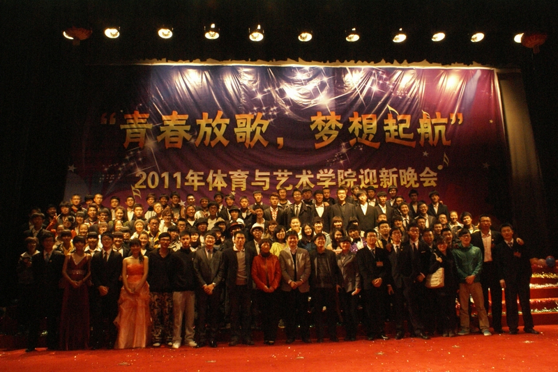 科艺苑隆重举行。出席晚会的领导有校团委书记叶玉刚老师,体育与艺术学院院长刘定一老师,党总支书记王琳老师,副书记曹凤才老师,科研与学科建设副院长王晓刚老师等。首先院长刘定一教授在晚会开幕式上致辞,赢得全场热烈的掌声,党总支书记王琳老师宣布“2011年体育与艺术学院迎新晚会”开始,晚会在一片欢呼声中拉开帷幕。