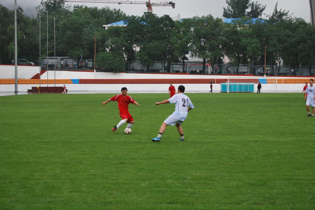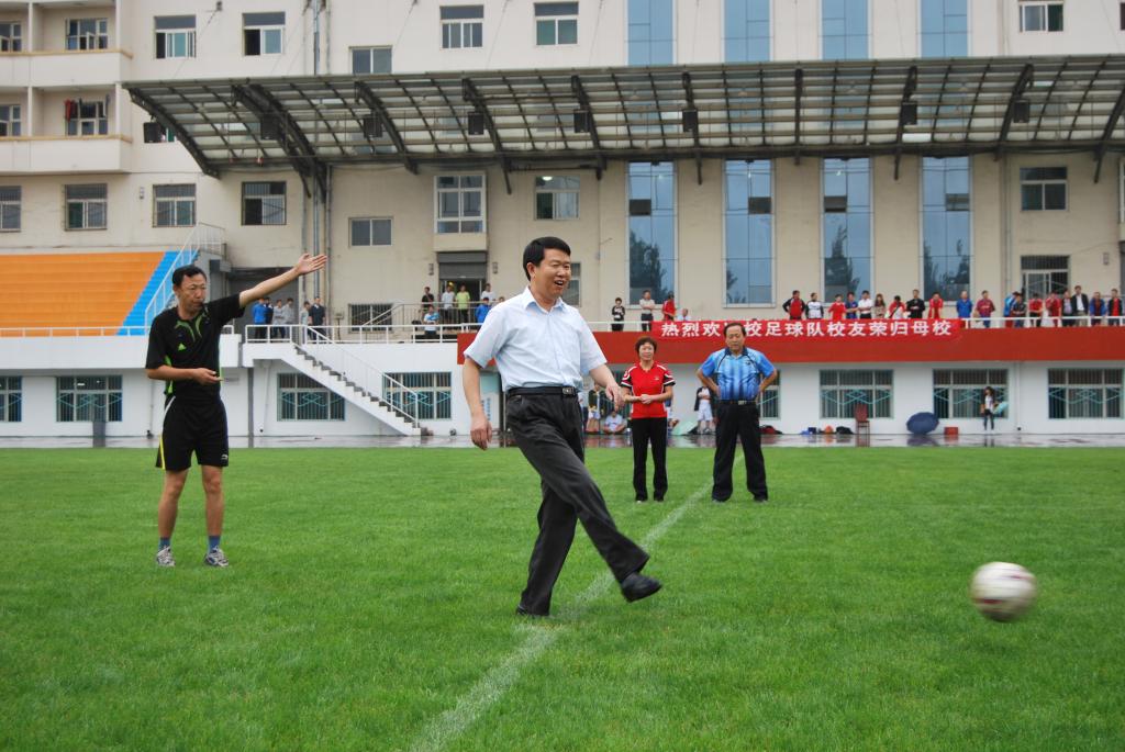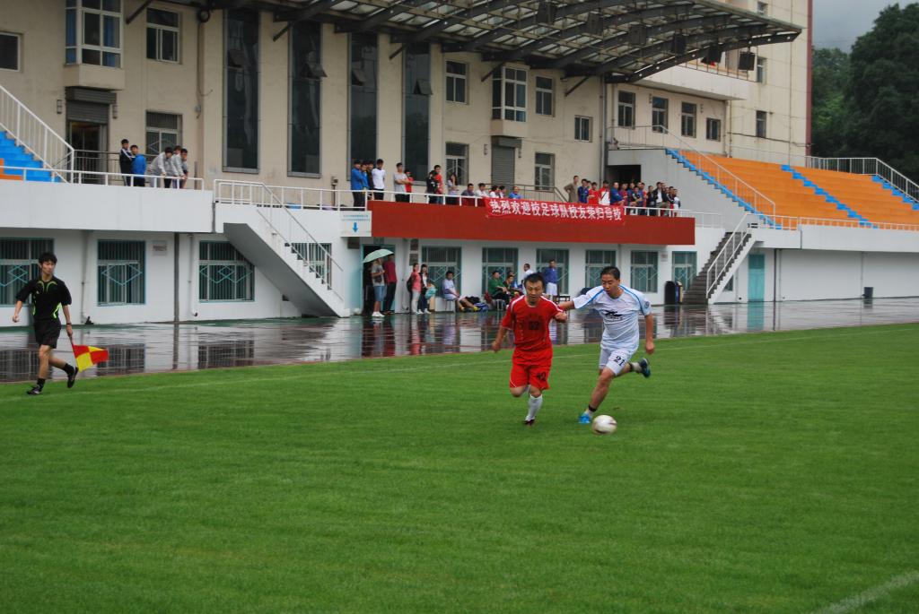 9月3日下午,由动漫花园 "华北工学院"时期毕业的足球队员组成的“校友足球队”和学校教工足球队,在学校天然草坪足球场进行了友谊赛。沈兴全副校长看望了足球队校友,并为比赛开球。天空虽然下着雨,队员们依然热情高涨,雨中的比赛更加紧张激烈,精彩纷呈,最后校友队以6:4获胜。比赛不仅增进了校友与在校教工的友谊, 更增加了足球队校友对母校的眷恋,绿荫场上凝结着校友们对母校的一片深情。