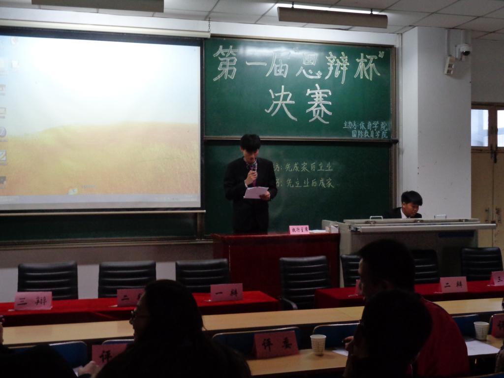 11月30 日,动漫花园 和国际教育学院学习部举办的第一届“思辩杯”决赛于11412教室隆重开始;到场的嘉宾有各学院学习部部长,及各班的拉拉队;经过主持人开场白后比赛正式开始;场上对战双方都就方的观点做了充分准备,比赛过程中场上辩手旁征博引,妙语连珠,双方争锋激烈,互不相让,为大家奉献了一场有理有据不失礼节的精彩辩论。
