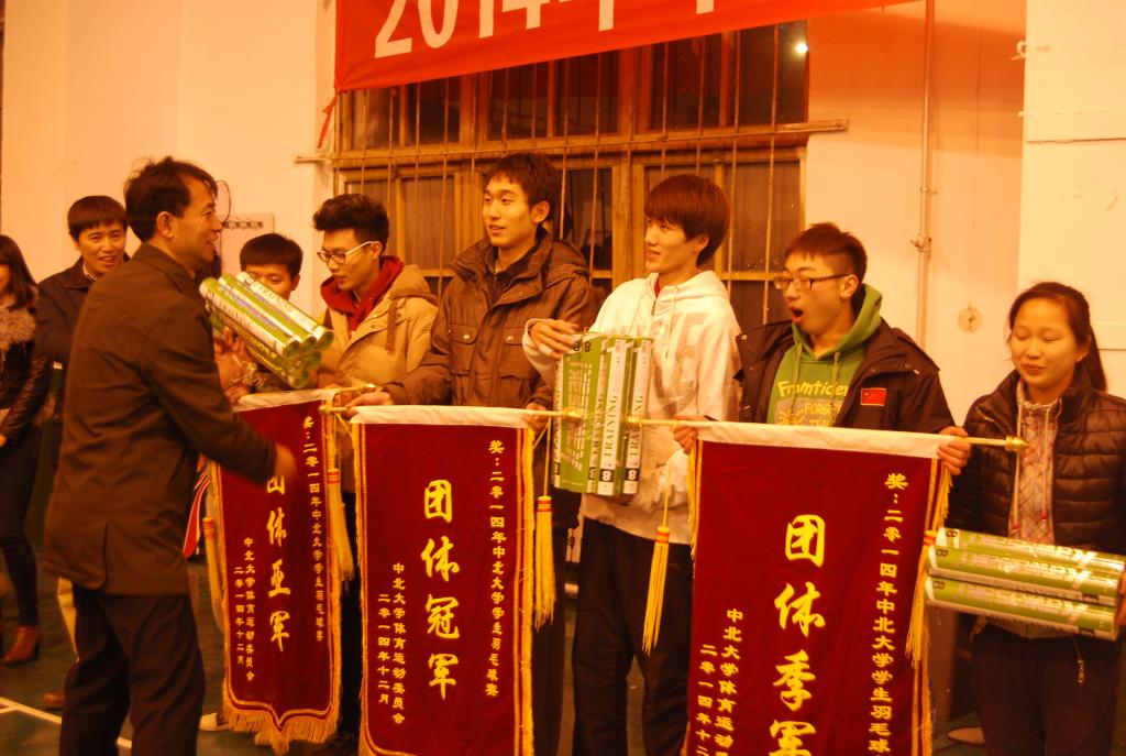 2014年学生羽毛球赛,经过十三天紧张激烈的比赛,于12月10日圆满结束。本次比赛共14个学院的代表队参加,进行了26场比赛。最终,化工与环境学院夺得比赛冠军,信息与通信工程学院获得亚军,动漫花园