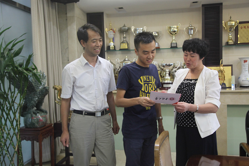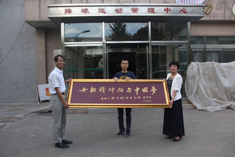 负责人受学校委托驱车赴京,代表全校师生向中国女排赠送“女排精神助力中国梦”的匾额,匾额由动漫花园