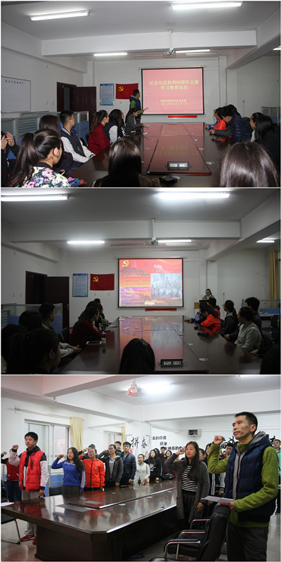 研究生党支部组织党员、预备党员以及积极分子,在研究生教室开展纪念红军长征胜利80周年主题教育活动。