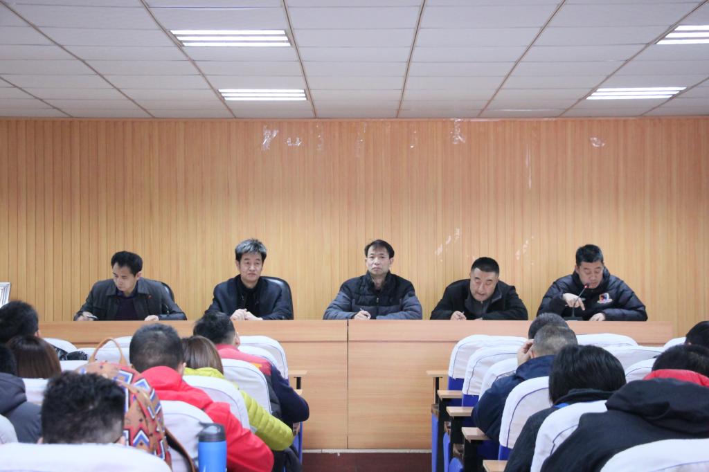 在一层会议室召开全院大会,学院全体院领导及教职员工参加了会议。